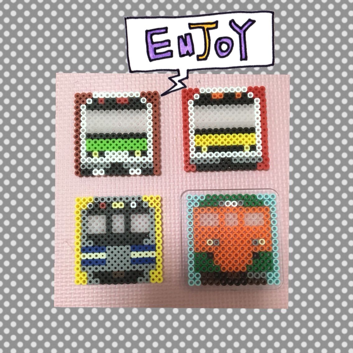 アイロンビーズで 「電車コースター」作ってみました。